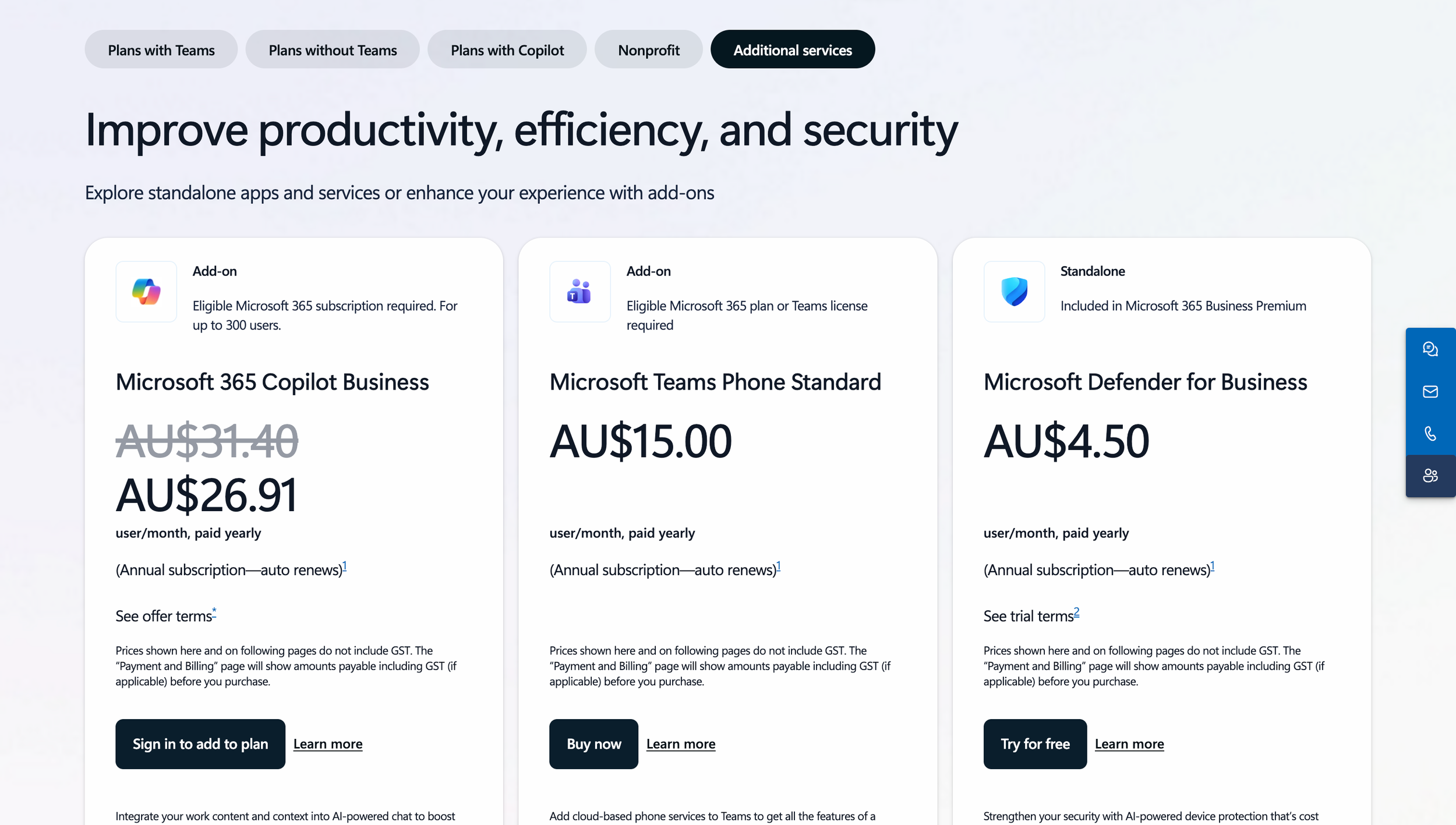PLEASE NOTE: If your Microsoft accounts are managed by an IT provider, you may need to ask them to Upgrade your account for you. Ask for “Microsoft M365 Copilot Business”.