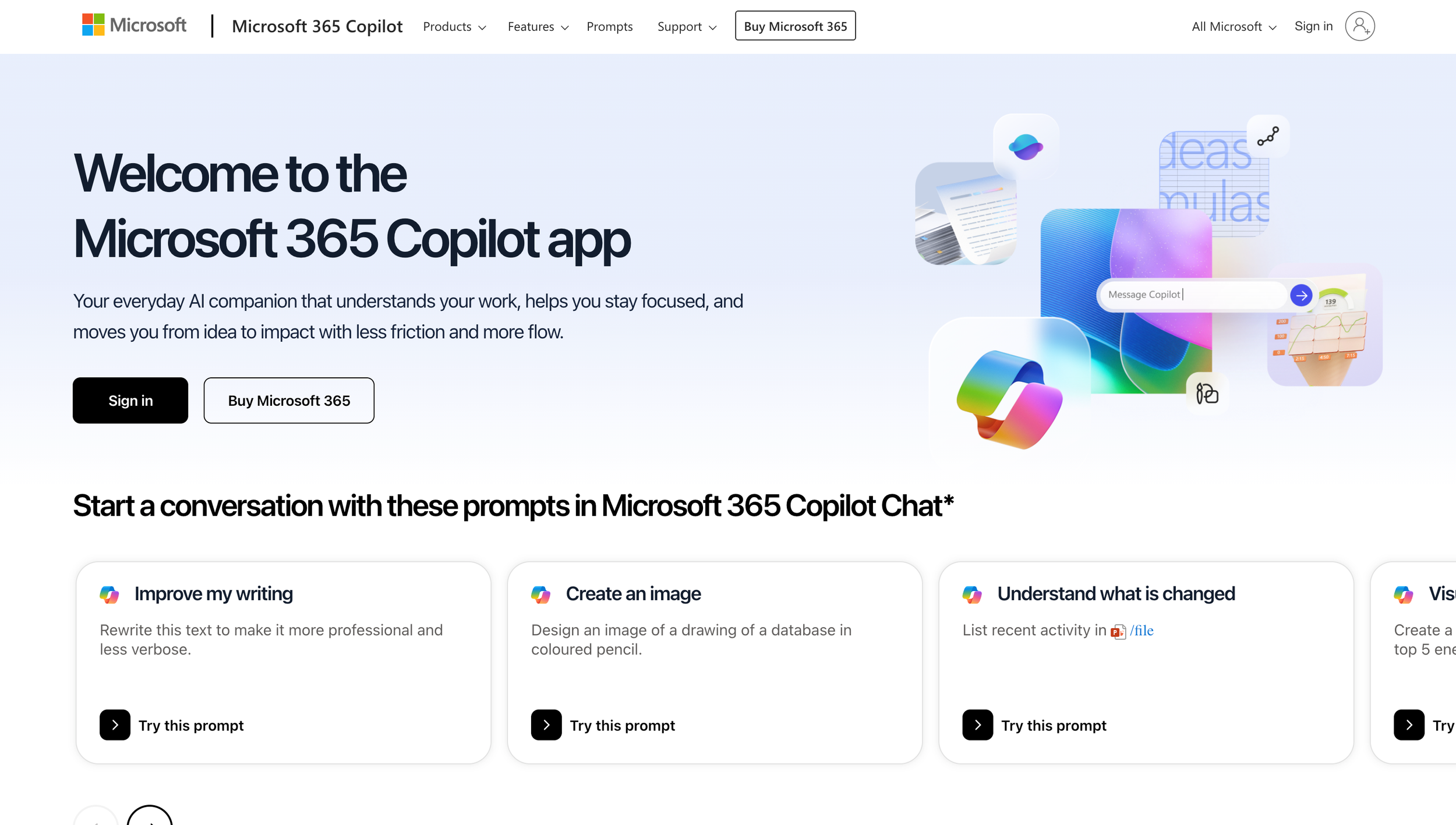 Use AI-powered chat connected to your work and web data and access Copilot in Microsoft 365 apps